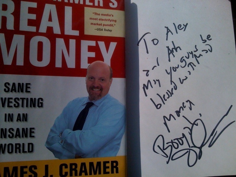 Today I met one of the gurus of investing, Jim Cramer. Jim Cramer has a show on CNBC called “Mad Money”. Jim had a discussion and book signing at Barnes & Noble, Union Square. He gave a speech on the naysayers on Wall Street and spoke about the end of the “crash”. The is by far one of the most influential people I’ve met in my life.