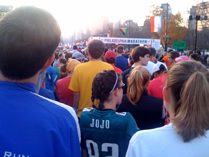 Announcers, including, Bart Yasso, who were very animated during the marathon’s opening, gives the go ahead for our corral to begin the race. The Mayor of Philadelphia is at the starting line giving “high fives”, I am not about to get in the melee. I started the race not knowing what to expect, this maybe a cliche, but it’s quite appropriate here, consciously, I know I struggled in our longest training run at mile 19, so given 26.2 miles, I am very cautious. My one and only goal at the start was to finish the race.