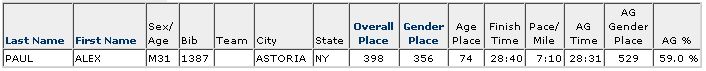 At the sound of the horn 3600+ runners crossed the starting line at Prospect Park for the 4 mile run course. I am not very familiar with the course being only ran it twice before last year. I went out at a 7:23 mile pace at mile 1. finished with a 7:10/mile average. Finished time 28:40.