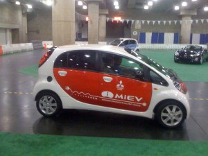 After a decade of residing in New York I finally went to the New York Auto Show on Monday. Due to the a recovery from the global crisis not too many concept cars were on display. I was fun walking around viewing new models. There is a definite trend in clean energy. One of the previews in clean energy concept cars we saw was the Chevy Volt. An fully electric car that can even be recharged using an app from a smartphone (e.g. iPhone, Nexus, Curve). The car I most vision myself driving was the 2010 Nissan Murano. We even managed to get test driven in the iMiev.