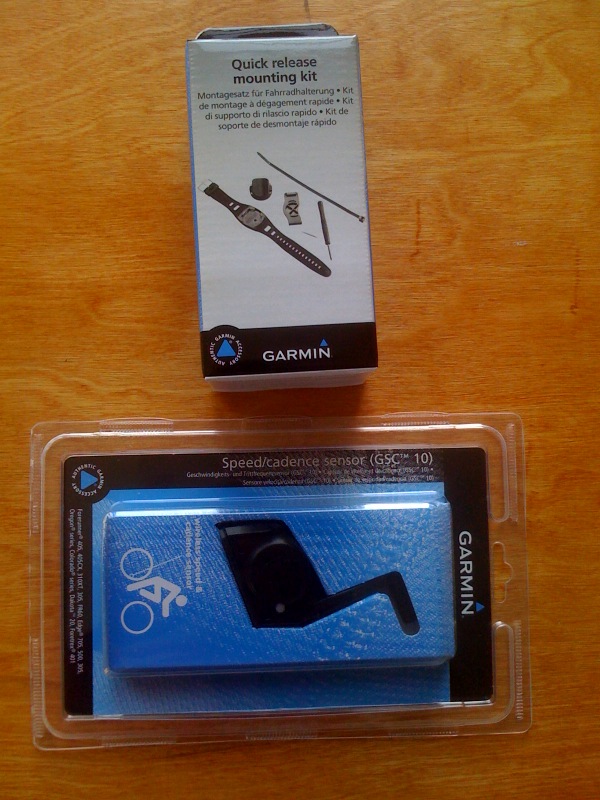 New accessories for my Garmin 310XT Forerunner. I replaced the original bracelet with a quick release. This comes in handy for a quick transition from the bike to the run when in training and triathlon racing. I also replaced my existing bike computer with the Garmin GSC 10 cadence and speed sensor. The sensor is a great investment on many fronts: to collect data on my cadence on the bike, it also gets rid of all the wire clutter that was present on my bike. The installation was pretty straightforward. After pairing the senor with the 310XT all was successfully tested. Can’t wait to take it out for a test ride. I love the quick release bike mount. However I am not crazy about the bracelet that comes with the quick release. Garmin could have made a more durable bracelet.