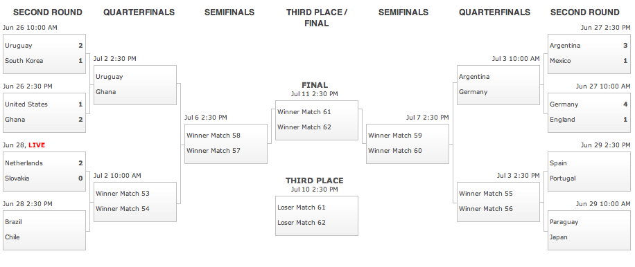 June 28, 2010 Alex Paul World Cup Bracket Share this: Share on Facebook (Opens in new window) Facebook Share on X (Opens in new window) X Like Loading... Related