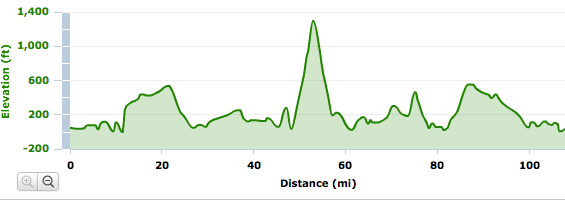 Another milestone achieved today. Let’s say a huge milestone :-). The goal was to put in a long bike today to test out my nutrition. The most I’ve biked was about 70-75 miles. Today I conquered the century. Today’s ride called for extensive preparation. Route choice, nutrition! nutrition!……Nutrition was by far the most important aspect of today’s goal. I purchased some Ironman perform drinks from GNC yesterday as that is what will be provided on the IMLP course and I needed to try them on this long ride. The only flavor they had in stock was the “lemon-lime” I bought all 10 bottles. My bikes current hydration config is 2 bottle racks on the frame, a broken seat post “profile design” hydration cage with only one cage left (need to replace soon) and my aero bottle (got musclemilk splashed all over my bike, sorry man). I used accelerade, Ironman Perform, MuscleMilk and offcourse water for all those 8 powergels I would consume. I also carried 2 powerbars of which I would only have 1/2 of one. That stuff is hard to take on the bike. I pretty much just stuck with liquid fuel.