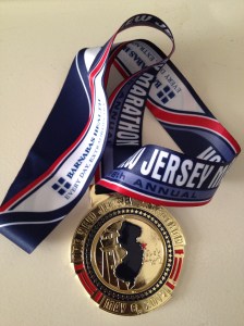 My goal for the NJ Marathon was to break 3:20. Given the flat course and racing weather, conditions were perfect. Race strategy was to run the first half in 1:40 and negative split the second half. When I signed up for NJM I was still recovering from my knee surgery and seeded myself in a conservative 3:40 start corral. Starting back in corral B may have presented a bigger hurdle than I initially thought. Passing runners and settling into a rhythm took more effort than I wanted to at such an early point in the race. Not sure what it was but I got a side stitch early on at about mile 2 of the race. I have been able to run through those in training before and also was able to for the next 3 miles or so when it subsided.