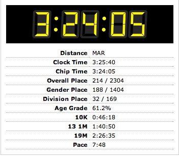At mile 25 I dug as much as I could to stay sub 3:25 on the day. Just kept my head down and leaned forward to save as much as I could for the finish.