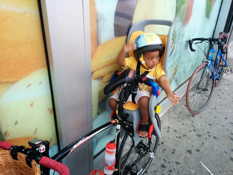 We also invested in getting Miles a Topeak Baby Bike seat. The baby bike seat is definitely more versatile for the urban streets of New York City as opposed to the trailer. It takes some getting use to with balancing, but at the end of our short 4 mile ride to Flushing Meadows it was already feeling natural. He is closer to me and I’m able to interact with him (high five) compared to he being further away in the Burley Bee trailer. I still favor the trailer over the bike seat as I still feel he is more comfortable in there and may have a better ride. Time will tell when he is able to convey with “words” how he truly feels π
