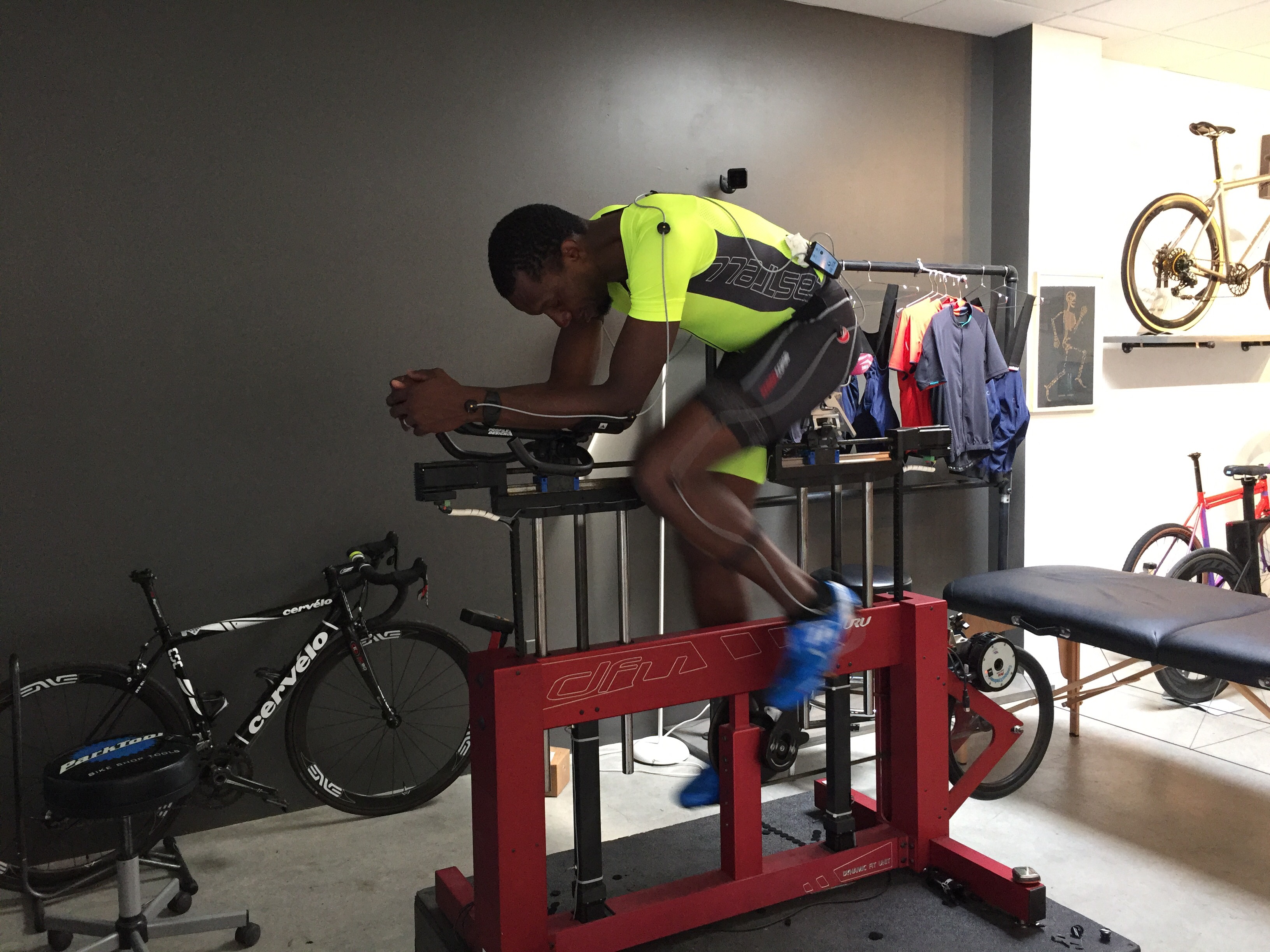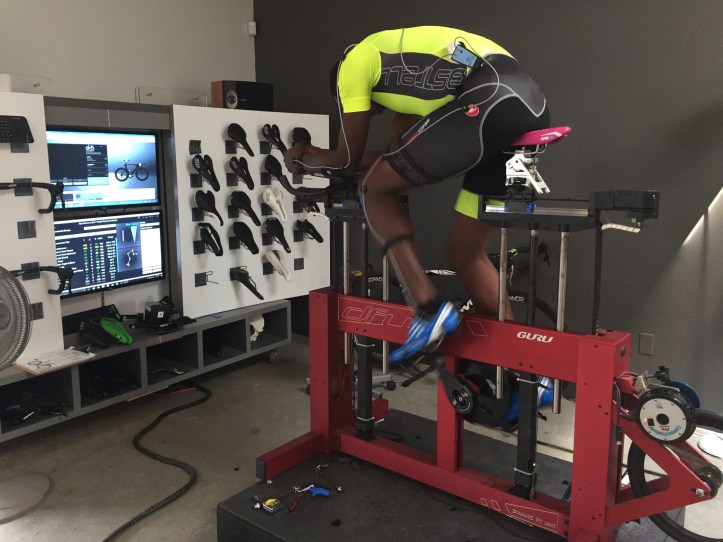He went on to place me on the mock bike (insert technical name here) then we started off on the journey of testing different positions. The positions we explored ranged from 0 to 3. 3 being the most aggressive forward position. Positions from saddle height to aero bar length were altered mechanically on the mock bike without the need for manual adjustments. This makes it extremely easier for tweaking. I ended up with position 2A.