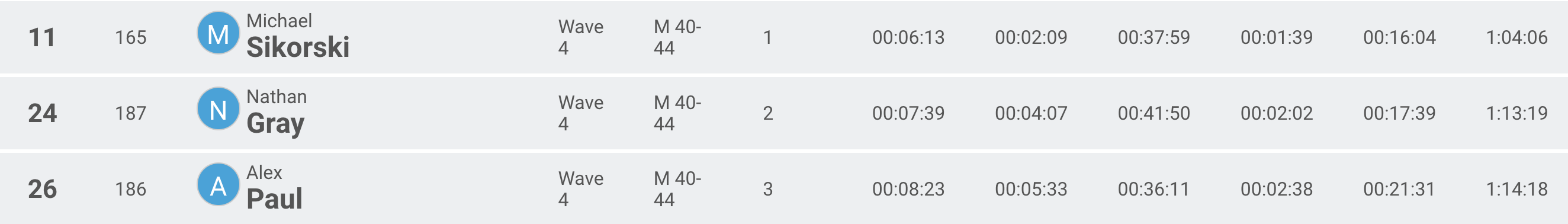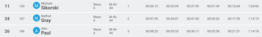 The swim was very choppy but I quickly made my way to calmer water once over the breakers. I did my best to go as hard and safe on the bike as possible. I had great legs left to finish off the run.