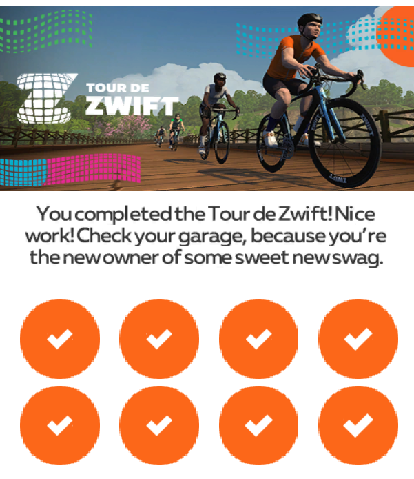 This was the “Tour of Fire and Ice” route in Watopia with a mountain top finish on Alpe du Zwift. ADZ always makes for a great climbing benchmark ride. I came into this stage with some left knee niggles from this week so really wanted to approach the ride conservatively.
