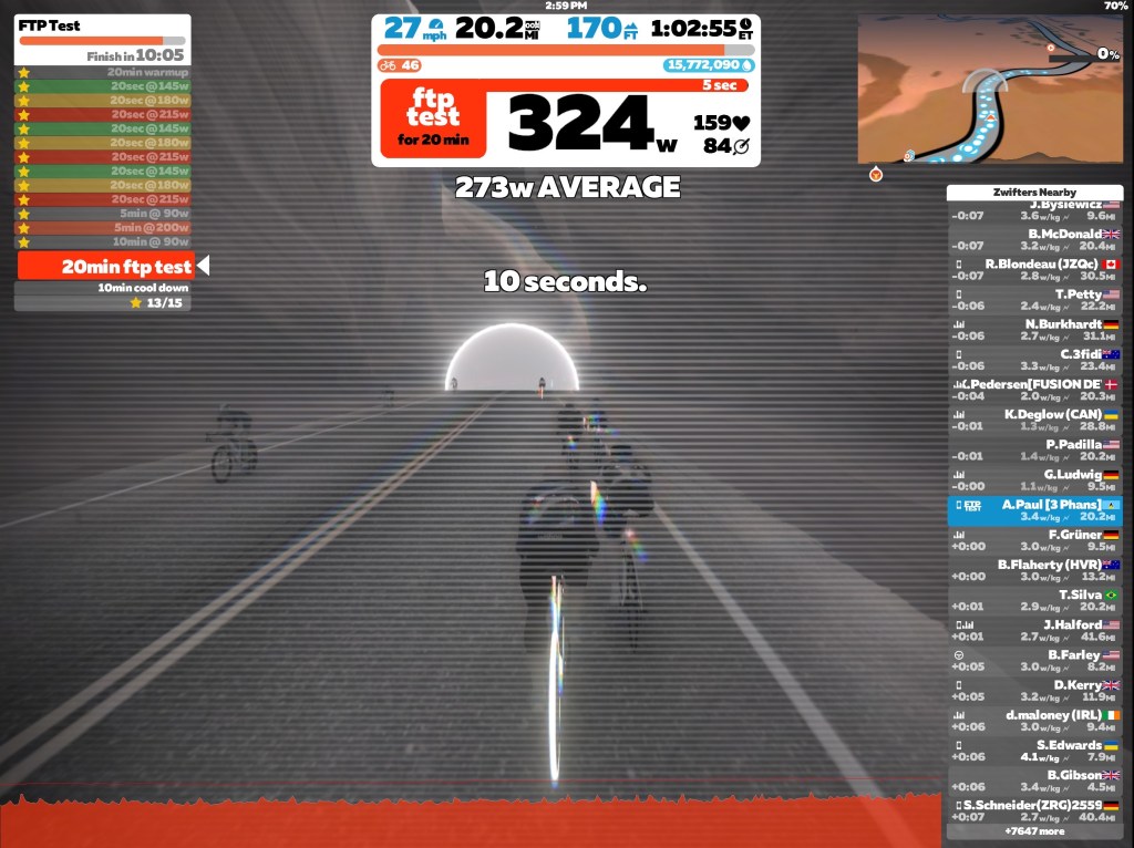For extra motivation I tuned YouTube into IRONMAN World Championships 2019 for the 20 minute FTP test. Really helped.