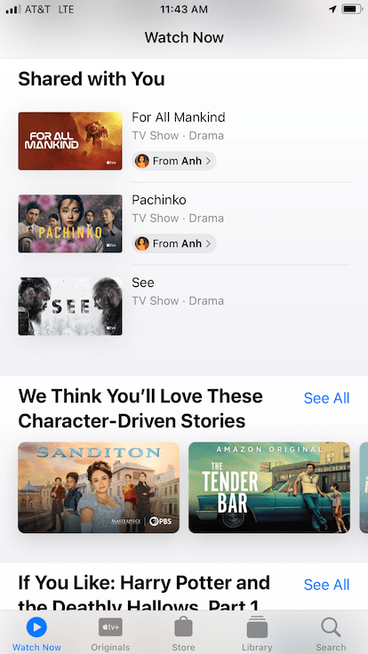 - Native app examples: TV’s app “Watch Now” tab and the Music’s app “Listen Now” tab.