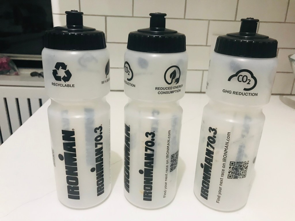 Hint: use bottles you’re willing to toss out on the course in exchange for IRONMAN-provided bottles to take home. 😀
