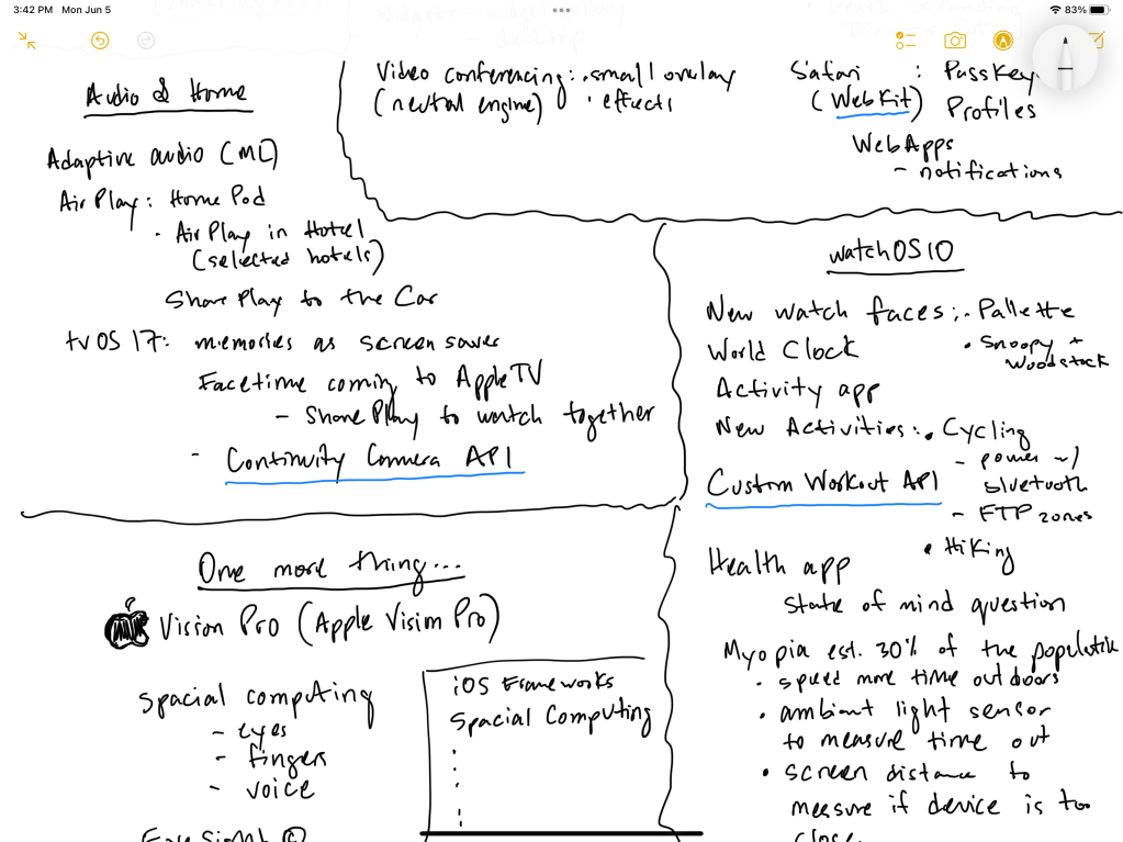 - watchOS 10: Custom Workouts API (TrainingPeaks will be able to take advantage of this API), Cycling activity is introduced along with the ability to add power zones based on your FTP from external sources that use Bluetooth