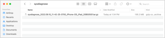 - After ~ 10 minutes the Sysdiagnose should be ready to download.